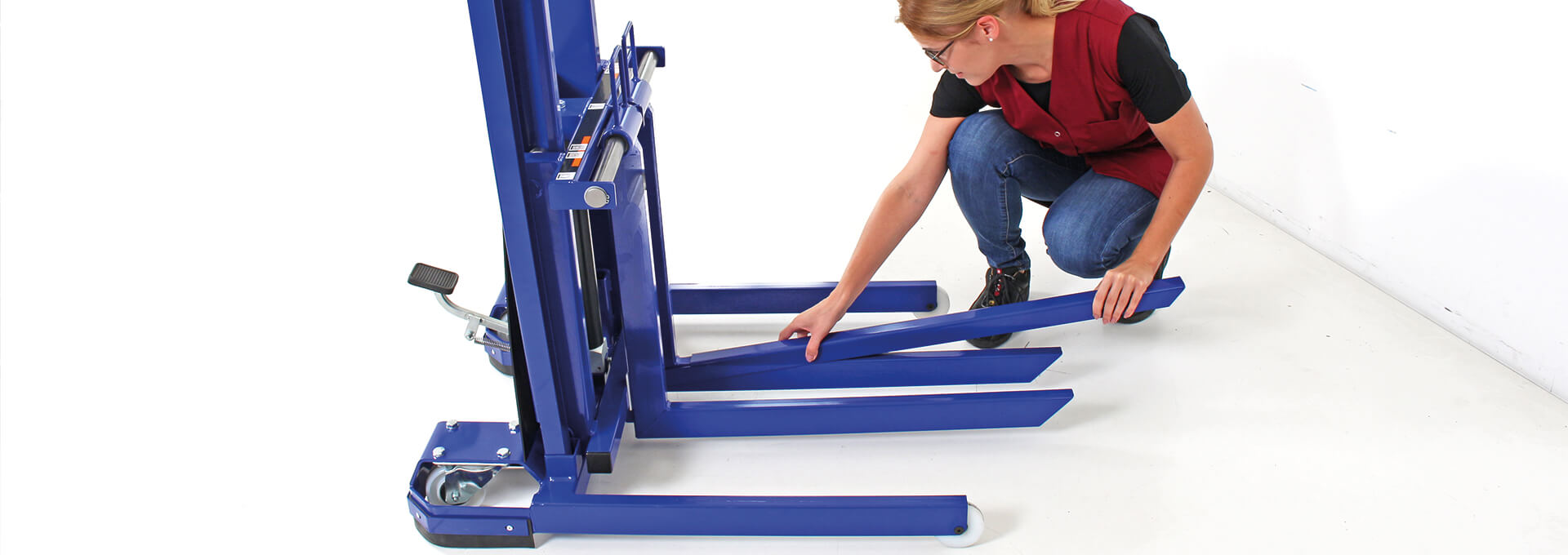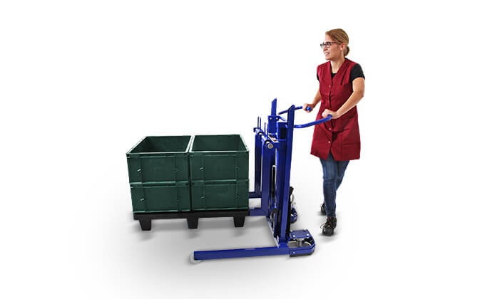 Um den Kombihubwagen so flexibel wie möglich zu machen, lassen sich die Gabelzinken bequem in der Breite verstellen – und zwar direkt von der Fahrerseite. So ist der Transport von Euro- oder Chep-Paletten möglich und der Kombihubwagen der ideale Allrounder.