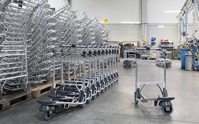 Durch eine hochfeste Spezial-Aluminium-Legierung sind Gepäckwagen bis zu 50% leichter als vergleichbare Produkte.